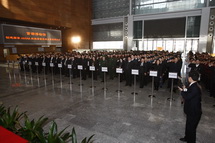 首都博物馆常务副馆长郝东晨带领全体员工宣读誓词 |