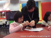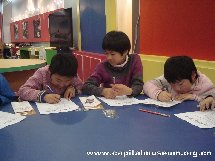 2011年3月5日下午,首都博物馆社教部在展厅开展了博物馆寻宝活动。其中有8名青年学生志愿者参加了此次活动,活动对象主要是面对前来参观的小朋友们,他们根据志愿者发出的答题卡,到展厅里寻找“宝贝”,每张答题卡有5道问题,如果他们都回答正确,将会得到一份纪念品。活动一开始志愿者哥哥姐姐们认真仔细地为前来参观的小朋友们介绍着活动情况,当他们听完后非常感兴趣,拿到答题卡,马上到展厅里寻找答案。他们在志愿者、爸爸、妈妈、爷爷、奶奶的帮助下,找到了“宝贝”并正确地写下了答案。在送小礼品的同时,小朋友们还填写了调查问卷,通过调查,参加此次活动年龄最小的为6岁,最大的17岁,他们大部分都是由家长陪同来的。通过采访,小朋友知道今天是学雷锋日,是青年志愿者活动日,还纷纷表示也要来做小小志愿者,为观众服务;谈到参观时学到了什么?有的说“学到了历史文化”,有的说“青花凤首扁壶”,还有的说“神道石柱”等等。