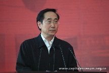 在开幕式上,孔繁峙局长、陈启刚副部长、董葆华副局长分别为活动开幕致辞,对北京地区博物馆为推动全市文化事业发展所做贡献给与了充分肯定,也希望博物馆能再接再厉,继续为北京市文化事业的繁荣和发展做出贡献。随后,在场领导共同启动了“我喜爱的博物馆展览”评选活动,并为“博物馆寻宝大赛”抽奖。开幕式结束后,与会领导参观了“展人文北京风采 促世界城市建设——北京地区博物馆发展历程回顾展”。