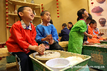 为期四天的首博首届少儿陶艺班圆满结束了。在这短短的四天时间里,小学员了解到了陶艺的相关知识,并亲自动手实践了陶器成型的各种方法。在第一天的知识课学习中,小学员们围坐一堂听老师讲解陶艺的起源,陶与瓷的区别以及一件瓷器的制作流程等相关知识。课程中,每个同学都积极主动与老师进行教学互动,有的同学还认真记笔记。之后的三天实操课,小学员们在老师的手把手示范辅导下完成了自己的两个拉坯成型和一个泥条盘筑成型作品。