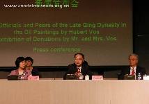 在开幕式前,还在首都博物馆多功能厅召开了“胡博•华士画笔下的晚清权贵——休伯特与苏珊伉俪捐赠展”新闻发布会。休伯特•华士伉俪、北京市归国华侨联合会主席助理李红军先生、北京市文物局于平副局长、首都博物馆郭小凌馆长出席了新闻发布会,并分别就展览和捐赠的相关情况向媒体做了简要介绍。