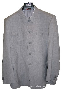 北京红都公司仿照1957年田阿桐师傅为毛主席设计制作的中山装为蓝本所复制。北京红都集团公司2011年捐赠。 |