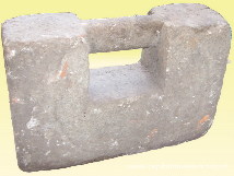 石锁 民国 石锁多以青石凿成,形如旧时锁状。一般重量为三四十斤。石锁举法主要有抓举和摆举,有用正掷、反掷、跨掷、背掷等掷法和手接、指接、肘接、肩接、头接等接法组成的各种各样的花色动作。北京地区在清道光年间盛行“举石锁”, 石锁可一人单练,也可双人对抛练习。竞技时两人、三人不等。胡振忠先生2007年捐赠。 |