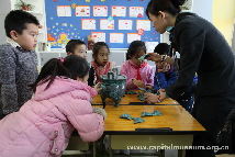 随后同学分为三组,在讲解员的带领下,体验了一次新奇的“国宝修复”活动。活动中,每组的同学都开积极动脑筋,在大家的努力下,原本散乱放置的仿真青铜残片,被同学灵巧的小手一片片地拼接起来,最后“文物”终于被还原成完整样子时,同学们兴奋地欢呼着、大叫着,每个人的小脸上都挂着灿烂的笑容。