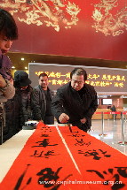 为喜迎2012龙年春节,弘扬中国传统生肖文化,由首都博物馆主办的“祥龙瑞彩——博物馆里过大年”展览开幕式暨“首都书法家书写北京精神”活动于2012年1月18日,在首都博物馆礼仪大堂隆重开幕。
