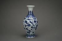 名称:艺术品仿制- 青花缠枝葫芦飞蝠纹橄榄瓶 (原文物首都博物馆馆藏) 编号:价格:规格:高材质:瓷说明:青花缠枝葫芦飞蝠纹橄榄瓶--造型线条优美,瓶体画蝙蝠翻飞于葫芦藤蔓果实中。葫芦与"福禄"谐音,蝙蝠与"福"谐音,绘画"福禄",表达了人们祈求福禄的美好愿望。