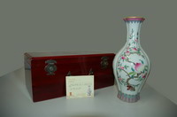 名称:艺术品仿制-粉彩三果纹瓶(原文物首都博物馆馆藏)编号:20113840117价格:规格:高材质:瓷产地:景德镇说明:青花缠枝葫芦飞蝠纹橄榄瓶--瓶体绘桃、石榴和佛手,称为“三多”,桃表示长寿,佛手代表富贵,石榴表示多子多孙,表达了古人“多福多寿多子孙”的美好愿望。