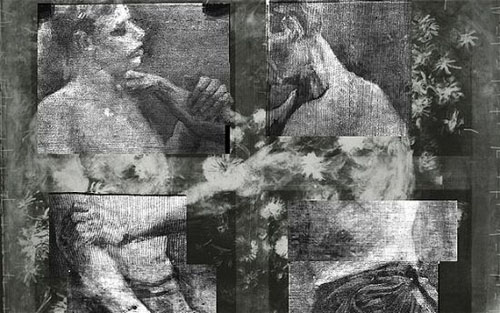 这件油画是荷兰的Kröller- Müller博物馆于1974年开始收藏的,它最初被艺术史学家们认为是一个无关紧要的艺术家的作品,后来,专家们才发现,在两个摔跤男人的画面之下,隐藏着一幅名为“草地上的鲜花和玫瑰”''Still life withmeadow flowers and roses'' 的作品,这件作品正是来自大名鼎鼎的梵高。