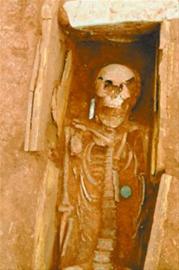 回忆起当初发掘的情景,王来柱翻开了《考古工作日记》。 2011年5月27日,那天上午刚上山清理墓葬的时候,当地民工张国龙在一个已经清理过的墓坑中发现了一条蛇。王来柱让张国龙将蛇缠在树枝上扔到远离发掘现场的草丛中。下午,发掘工作继续进行,15时45分,考古队开始清理第四地点9号墓,掀开石棺盖板后,将棺内的淤土清理干净,露出了一具完整的人体骨架。墓主人在棺中呈仰面、直身姿态,右耳下有一个鸡骨白色的玉饰。