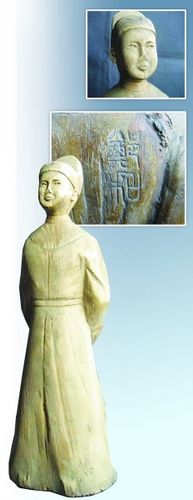 经过盛华杰先生的考证,此尊郑和像为明代早期宫廷制作。记者好奇地看见,在雕像的背部右方,琢有阴刻篆书“郑和”二字,字文规整、隽秀、大气、流畅。记者忍不住问,这会不会是郑和后裔,或者地方政府所制作?“这不会,在我国古代,后人必须为先人避讳,绝不会直书‘郑和’二字,而且后人为祖先塑像,以示尊重,一般为坐像,但这尊塑像是站姿。”盛华杰先生分析说。