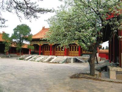 寿康宫:正殿前两树梨花开得正盛