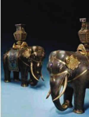 此次拍卖的点睛之作是一对“清18世纪掐丝珐琅太平有象尊”(估价400万-600万港元)。在中华传说中,灵象是刚毅、仁德和福寿的化身,故这类题材散见于各宫室殿宇。此次拍卖的太平有象尊乃配对之作,灵象各配辔头、披挂,鞯上以云纹和海水江崖纹为地,其上饰龙纹,背上鎏金鞍各驮一方尊。除工艺卓绝之外,本拍品流传有绪。据传,本拍品曾为英国前首相丘吉尔旧藏,并先后纳入希腊船王奥纳西斯及著名女高音歌唱家玛丽亚•卡拉丝的私人珍藏。紫禁城养心殿东暖阁是同治及光绪二帝与群臣议事及慈禧太后垂帘听政之所,该处宝座前的一对掐丝珐琅太平有象尊,外观与本拍品如出一辙。