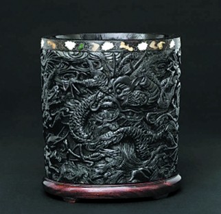 一谈到木质艺术品收藏,人们最先想到的往往是近年在拍卖市场上叱咤风云的大件紫檀、黄花梨家具等“大块头”。不过,今年春拍的风向似乎有所转变,在上周末的中国嘉德春拍“翦淞阁文房宝玩”专场上,全场35件拍品悉数易手,100%成交,总成交额达到12671万元。其中 “明 周制 鱼龙海兽紫檀笔筒”以5520万元成交,刷新了木质笔筒的拍卖成交纪录。