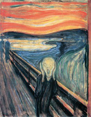 《尖叫》(1893),最为人所知的版本,现收藏于挪威国家画廊