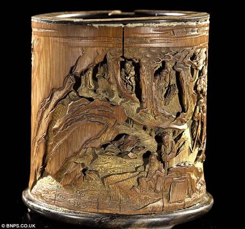 根据英国每日邮报报道,最近一个古代的中国笔筒被拍出了36万英镑的天价,而在拍卖前这个笔筒险些被当做垃圾扔掉,好在一位眼尖的店员发现这可能是一个老物件。