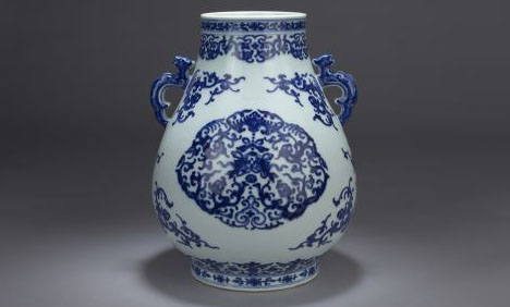 清乾隆青花夔龙耳尊
