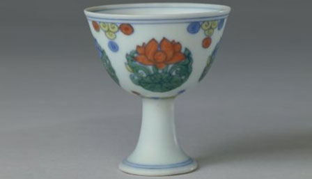 斗彩团莲纹高足杯,明成化,高7.2cm,口径6.7cm,足径3.4cm