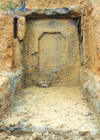古墓主人不详,前门已不存,墓室其它三面完好,正墙身有纹饰,多为卷云和卷草,精细入微。墓室深3.1米,高2米,宽1.4米,分上下两层,上层为器物摆放室,下层为棺材停放室,死者为红漆棺材埋葬,仅存少量骨骸。
