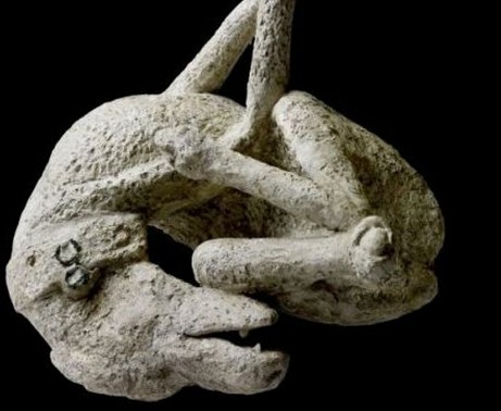 在公元79年被掩埋在庞贝古城一座房屋内的一条狗的石膏模