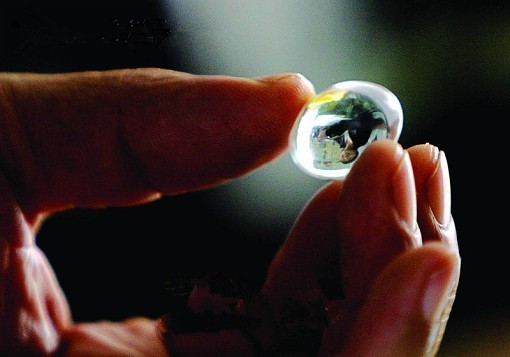 这颗椭圆形的珠子直径2厘米左右,无色透明,光滑无比(资料图)