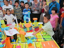 16对亲子家庭被委以在特制的大型城市地图上根据活动中的“地块开发要求”建造建筑模型的“重任”。模型艺术家在活动中协助家庭完成自己的建筑模型。活动结束时,小朋友把自己制作的模型布局在地图上,构建出一个新的北京城。每一位小小建筑师都分别阐述自己制作的建筑模型的理念,颇有建筑大师的风范。有一位小朋友建的模型是高端发达的科学实验区,幻想自己是未来的科学家;还有一位小朋友把自己的家建在了水系旁边,并别出心裁地设计了一座拱形桥,连辅导老师也连连夸奖小朋友设计的巧妙;参与活动年纪最小的小朋友设计了整场活动中一个最高的建筑物,他说:“我要把世界上最高的建筑物建设在我们中国!”