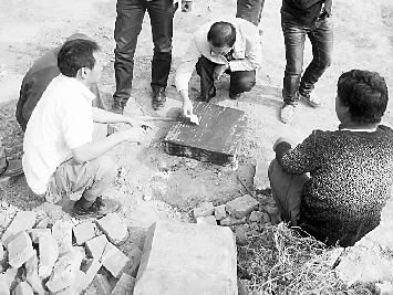 施工工地发现了古墓葬,当有人要拿走文物时,现场群众加以制止并及时拨打报警电话