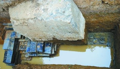 台基西侧还出土了3个体量巨大的柱础石,柱础石的外立面近似于方形,边长约1.8米,高1.35米,顶部还有圆形台面。其中一个柱础石下方,还保留有用一块块青砖砌筑的磉墩遗迹。柱础石是古代建筑中用来承受房柱压力的垫基石,同时还可以抬高柱脚与地坪隔离,起到防潮的作用;磉墩则是以砖石砌筑、用来加固柱础石的基础。考古专家介绍说,此次发现的3个柱础石体量巨大,而且方位都处于南北向的一条直线上,应该是在奉天殿台基之上的大殿主体基础。
