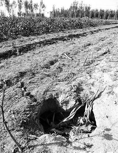 据村民介绍,这些探洞和盗墓坑十几年间一直没有间断过。起初村民们不太在意,将坑回填后继续种地,但这些盗墓坑对耕地的破坏性逐渐显现出来。