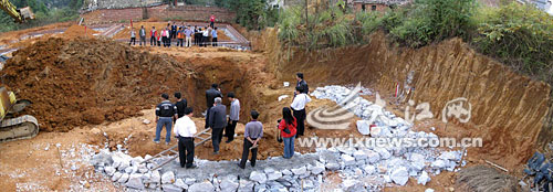 2011年10月18日下午,六模村村民在挖建宅基过程中发现一处古墓。