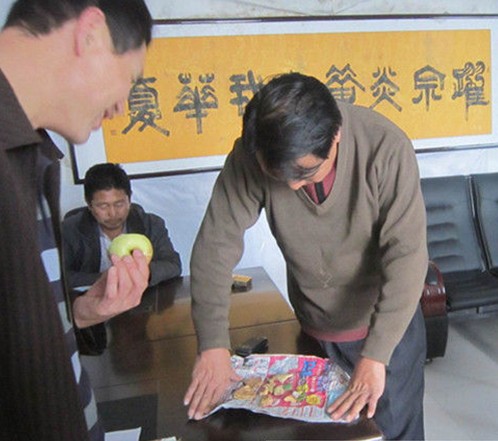 中国陶瓷设计艺术大师李廷怀(右)仔细查看出土的陶瓷片