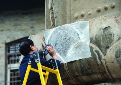 “主要是侵蚀得太厉害了,不仔细看,根本无法发现。”该负责人说,工作人员在对塔身进行保养时,无意中发现,莲花瓣上好像有些线条组成了模糊的图案。在一幅拓片上,扬子晚报记者看到,一尊佛像隐约藏在错综复杂的植物藤蔓图案中。“这尊好像是金刚护法,其他图案上手上似乎拿着乐器。”现场一位老师傅告诉记者,自己在栖霞山工作了几十年,经常接触考古和文物保护工作,从来不知道莲花瓣上还有这样图案。