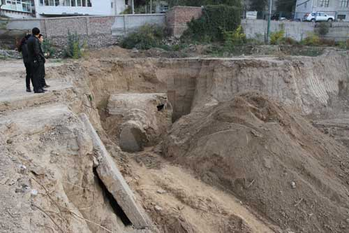 这里挖出古墓了,你们快来看。10月28日下午,市民拨打本报新闻热线报料,记者立即赶往城关区河区和平新村南社区的的建筑工地一探究竟。