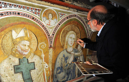 在意大利阿西西(Assisi)一座被遗忘的教堂中,修复壁画的艺术修复人员偶然发现了证据,证明灰尘下那幅令人惊叹的画作为中世纪艺术家乔托(Giotto)所作。