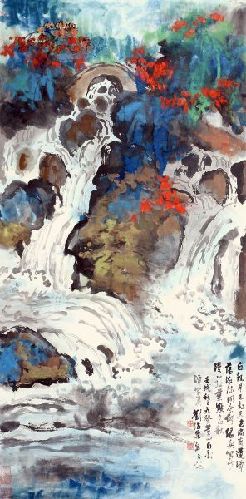 刘海粟的作品往往给人以天马行空的感觉,夸张的用色以及笔墨让人过目不忘。而远观又极其生动极具层次感,正是这种开拓的创作精神,独特的艺术形式,以及生动的作品内容使之成为了近现代中国美术史中不可或缺的艺术大师。刘海粟一生最爱黄山,一生最重要的作品也多以黄山为题材,可以说黄山是海粟艺术的源泉,海粟给黄山增添了艺术内涵。从1918年第一次跋涉黄山到1988年第十次登临黄岳,跨度达70年之久,几乎包括了刘海粟一生的艺术实践活动。单就70年来十上黄山的壮举,就破了历代画家的登临纪录。而他以黄山为题材创作的作品,包括速写、素描、油画、国画,总量蔚为壮观。他在十次登临中体现出来的不断攀援、不断超越的品格精神,更可令人敬佩,引作启迪。1982年刘海粟九上黄山,创作了大量的国画作品,艺术上进一步提升,可谓"渐老渐熟,愈老愈熟"。