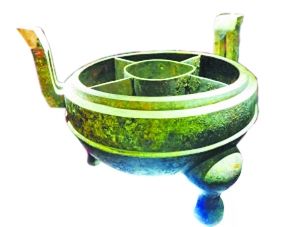 刘胜墓中出土的暖炉,尚不能直接证明他生前爱吃火锅,但南京博物院在江苏盱眙县境内大云山西汉墓中考古出土的一件分格鼎,则直接证明墓主、西汉江都王刘非特别青睐吃“火锅”。而且,不只证明他喜欢吃火锅,还证明他吃的是“鸳鸯火锅”。