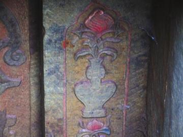 古墓内石砌的门窗清晰可见,门窗上的牡丹、水壶等各式雕花保存完好,艳丽夺目。