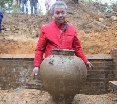 11月28日上午,宜昌市博物馆的工作人员开始对不久前在点军发现的古墓群进行考古发掘,确认其中一座为明代砖字墓,接下来还将对另外两处墓地进行发掘。被挖开的这座古墓露出了由青砖砌成的墓坑,宽约1米,长3米左右,墓坑中有一块刻着墓志铭的断碑,墓室内发现陶罐、陶炉、瓷碗等陪葬品。经专家现场考证,陶罐、陶炉、瓷碗等制于明朝年间,这是一座明朝时期的砖字墓,墓主应该是一个平民。