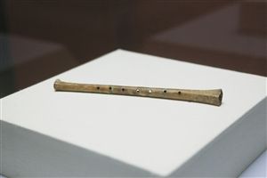 在本次展览中,被称为“中华音乐文明之源”的新石器时代的贾湖骨笛,是宁波博物馆工作人员首先推荐的宝贝。记者看到,贾湖骨笛是一件用鹤类动物的尺骨所制的七孔乐器,长为22.2厘米,“神奇的是,虽然年代久远,但是它的音准基本无误,至今仍能吹奏出简单的音乐。”工作人员介绍说,贾湖骨笛的存在也证明了中国早在七八千年前就已经有了七声音阶。