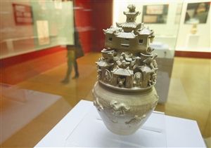 据了解,三国西晋时期的青瓷堆塑罐又名魂瓶,是冥器的一种,多出于江南地区,“因为西晋时期的社会经济形态是以大地主庄园经济为主,加上佛教文化、西域文化对吴越之地的渗透,因此此时的堆塑罐上多出现楼阁建筑、仙人佛像及杂耍奏乐胡人俑。”博物馆工作人员介绍说。