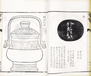 清道光刻本《金石索》夹板12册,收商周到汉和宋元时的钟鼎、兵器、权量杂器,以及历代钱币、玺印和铜镜等。石索(六卷)收历代石刻,以及带字的砖和瓦当。每种器物大多有器形图和铭文拓本,后面有冯氏的释文或考订。书中所用材料,一部分为作者的藏品,一部分则采自黄易、叶志洗、桂馥诸家。还有的采自宋代和清代的各家钟鼎款识或专著。材料取舍尚算严格,但也有鉴别不当者,如把所谓的比干铜盘列为商器,相信“岣嵝碑”、“坛山刻石”是夏、西周时之物;又把战国布币误认为葛天氏、神农氏时代的遗物。但此书内容丰富,实为一部古器物大全,因此对于一般读者仍有一定的参考价值。《金石索》不仅可以作今日收藏金石器的指南,更重要的是它还告诉我们什么是真正的收藏,收藏就是对藏品进行鉴别,进行考证,进行整理著录及研究。