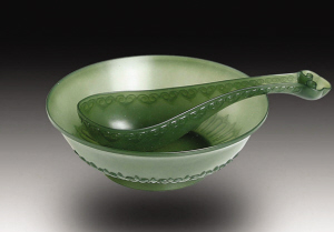 据沈胜利介绍,现在常见的一些珍贵材质艺术品也常有造假的情况,像旧珊瑚仿品中,有的是象牙染色仿珊瑚,可以见到象牙特有的交叉网状纹路;有的是骨染色仿珊瑚,有微小的深色气孔;还有的是木仿红珊瑚珠,清代晚期至民国时期有用木珠作芯,外层封蜡做成红珊瑚珠,表面可以做出指纹状条痕,欺骗性很强。鉴定这种仿品的时候可以用珊瑚珠敲击玻璃或瓷器,真珊瑚会发出“叮叮”声,而木制的假珊瑚则会发出暗哑的“壳壳”声。解放前的古玩商人常用蜡来修补珊瑚上的孔洞,这种工艺也用在了玉器上。沈老曾经看过一件痕都斯坦工青玉菊花纹薄胎盘,朝灯光一照,果然发现了透光程度不一的斑痕,应该就是用蜡补过的孔洞。凡是玉雕薄胎的器物都常有孔洞,需要细心观察寻找才不至于上当。