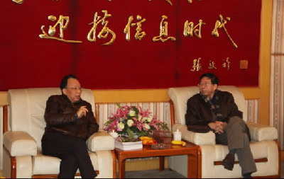 2012年12月17日上午,著名鉴定专家金申、周学文先生在文物鉴定与鉴赏杂志社社长钱洲胜、执行主编常松的陪同下亲临我社指导工作。