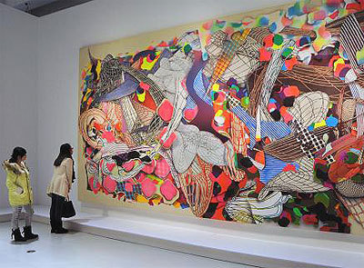 12月16日,艺术爱好者在上海当代艺术博物馆观赏弗兰克·斯特拉作品《波伦布》。当日,“电场:超越超现实”法国蓬皮杜中心藏品展在上海当代艺术博物馆开展。此次展览展出作品共计102组119件,是蓬皮杜中心在中国大陆的首次大型展览。展品年代从上世纪20年代超现实主义伊始跨越至今,类型涉及绘画、雕塑、装置、 摄影、建筑模型和手稿。展出包括米罗、毕加索等大师的作品。 法国蓬皮杜中心藏有6千余位艺术家创作的近8万件作品,居世界现当代艺术品收藏首列。