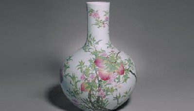 故宫藏清雍正粉彩蟠桃纹天球瓶