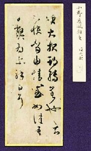 另外,该摹本所用的纸张是“纵簾纸”(纸上存在竖的条纹),与以前发现的摹本一样。摹本旁边还附有德川幕府末期到明治时期的古书法鉴定权威“古笔了仲”的鉴定纸条,上写“小野道风朝臣笔”。