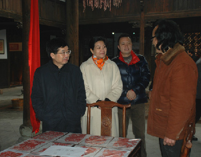 1月7日上午,浙江省副省长郑继伟、省政府副秘书长马林云,在金华市委常委、宣传部长何杏仁,副市长林丹军陪同下,冒雨视察古子城历史文化街区,参观了婺州窑研究所、剪纸博物馆和黄宾虹故居。
