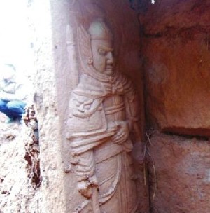 这座古墓位于佛荫镇沙坎片区。当地一村民称,当时一辆挖掘机正在自家的宅基地作业,隐约看见挖出了几块青石板,上面刻有武士像,于是向佛荫镇派出所报案。当天,合江县文物局迅速派出专家来到现场勘查。经专家初步鉴定,确定该古墓为宋朝时期的小型规模墓葬。