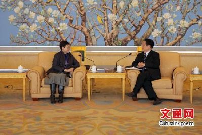 1月23日,文化部部长蔡武在北京会见了来访的台北故宫博物院院长冯明珠,双方就进一步深化两岸故宫合作,推动两岸文化交流广泛交换了意见。