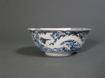 明景泰、天顺青花地留白海水行龙纹碗,景德镇戴家弄窑址采集
