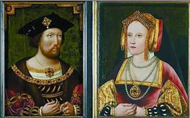 亨利八世与第一任妻子凯瑟琳的肖像画。